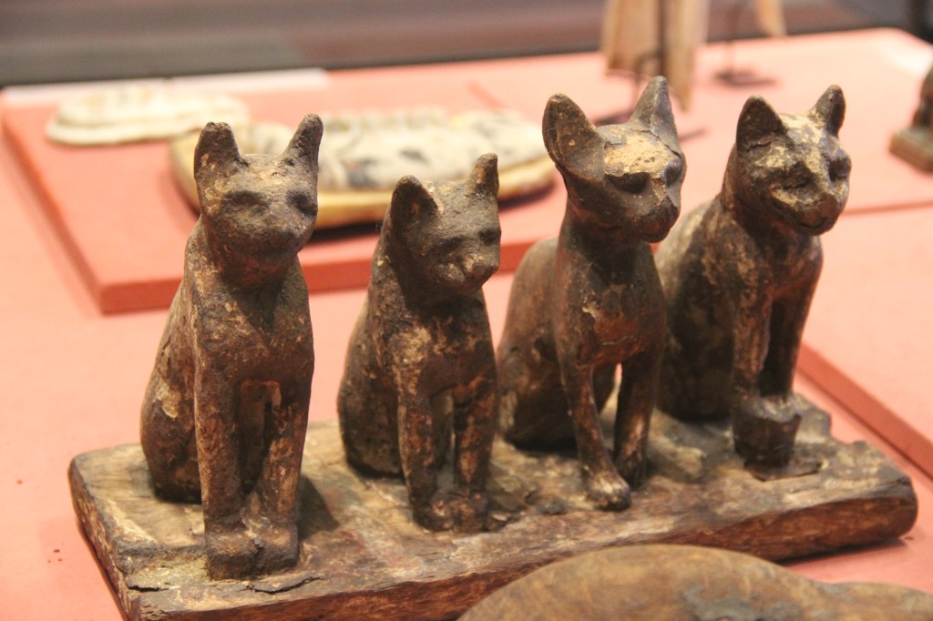 The lion, with its strength and majesty, symbolized power. Cats were believed to be protectors against evil spirits, and The ibis bird was associated with the god of wisdom and writing.